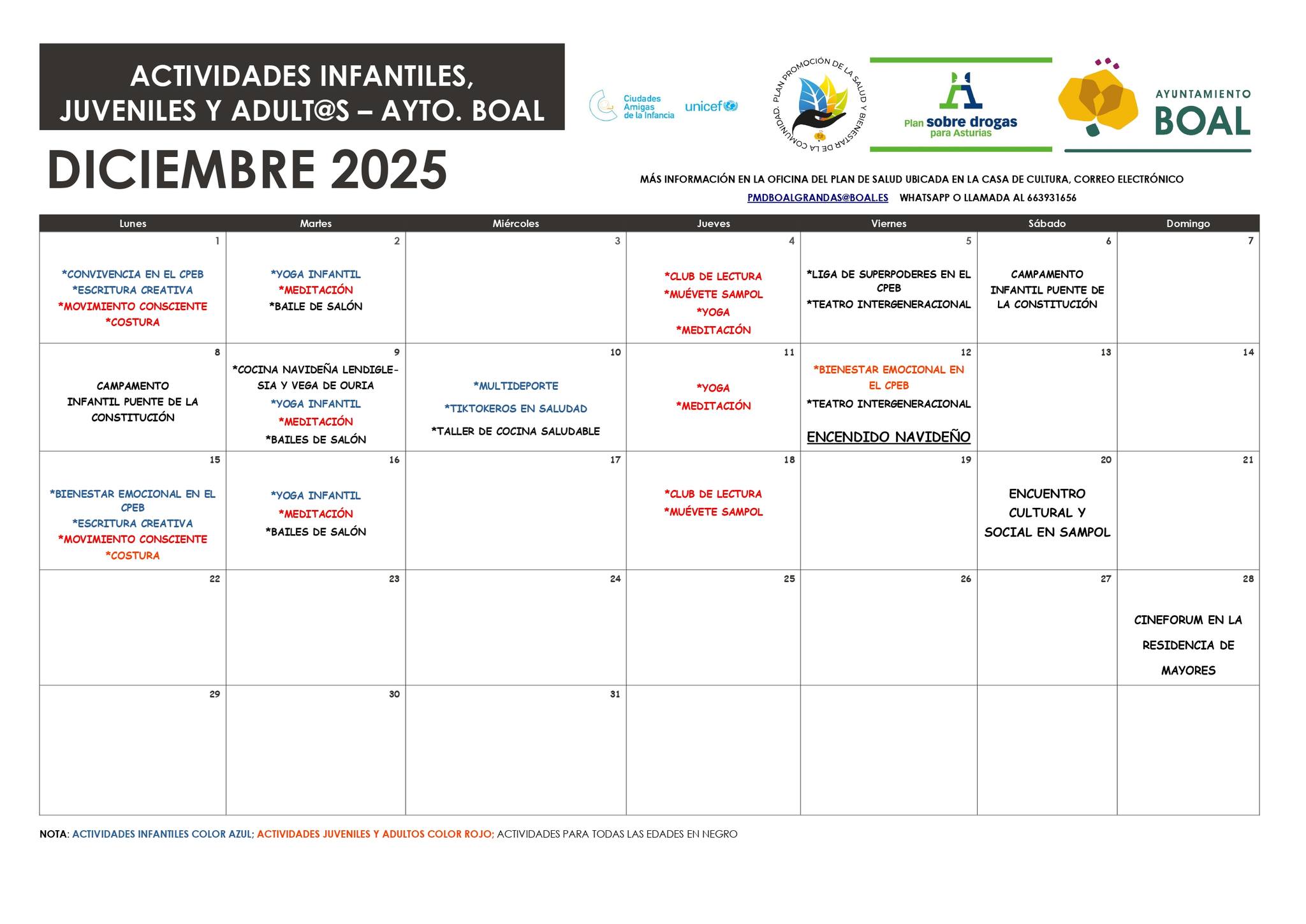 El mes de diciembre llega cargado de actividades a Boal, despidiendo así de la mejor forma posible un 2025 al que ya le queda muy poquito.