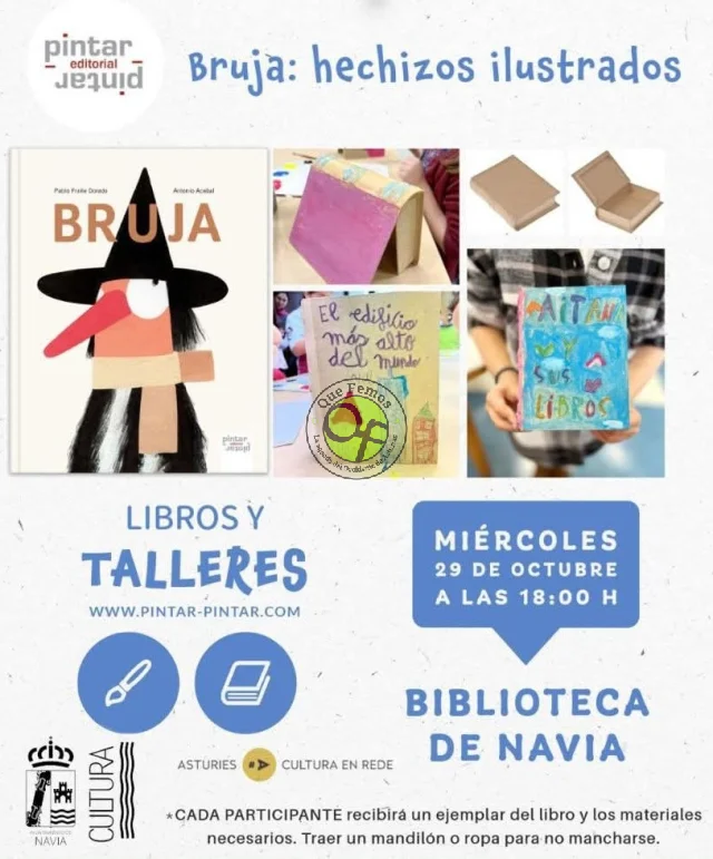El próximo miércoles 29 de octubre, a partir de las seis de la tarde, en la Biblioteca de Navia disfrutarrán de libros y talleres de la mano de Pintar Pintar.