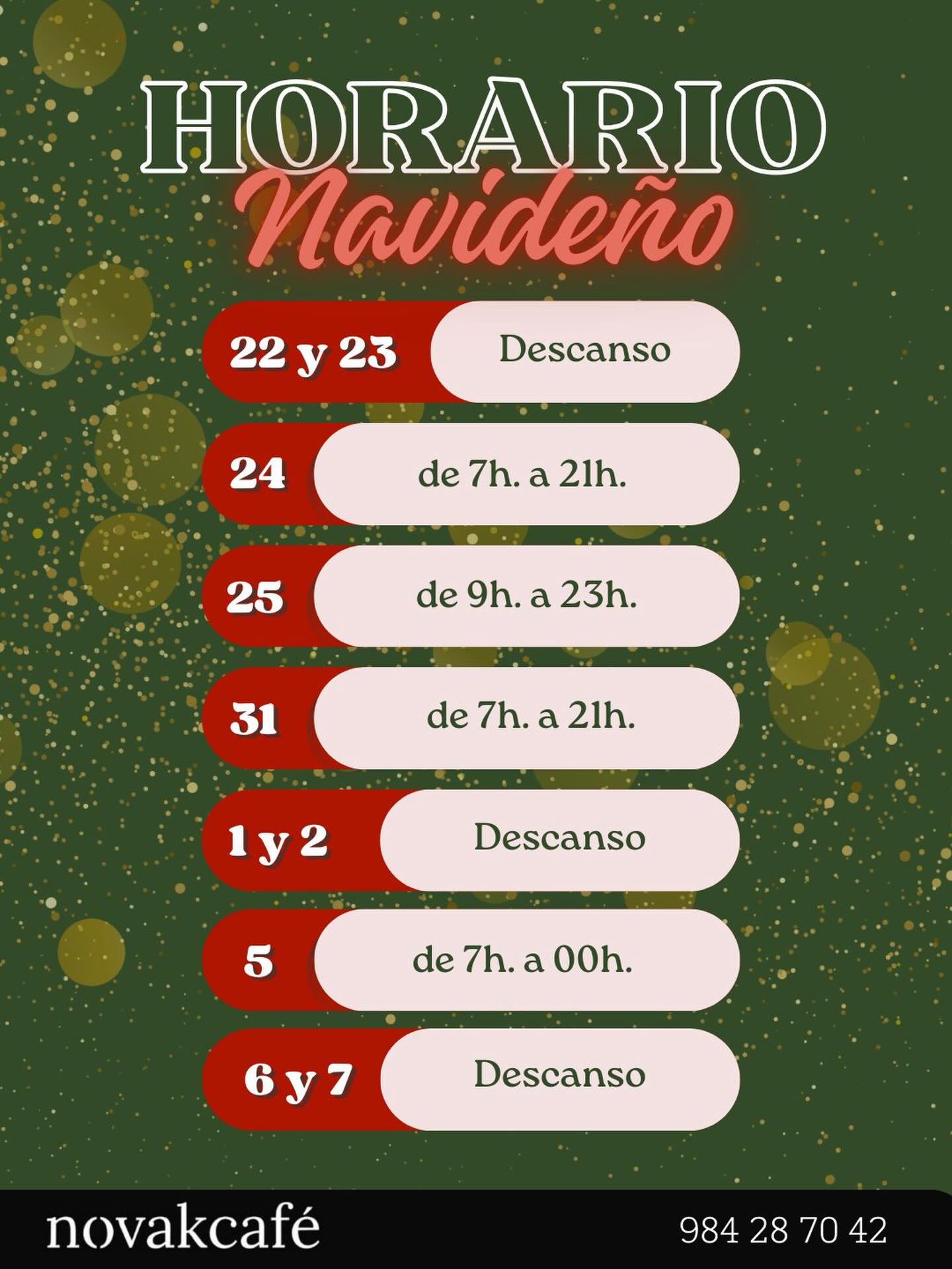 El Novak Café nos acompaña también en Navidad, pero lo hará con horarios especiales, tal y como podéis consultar a continuación:
